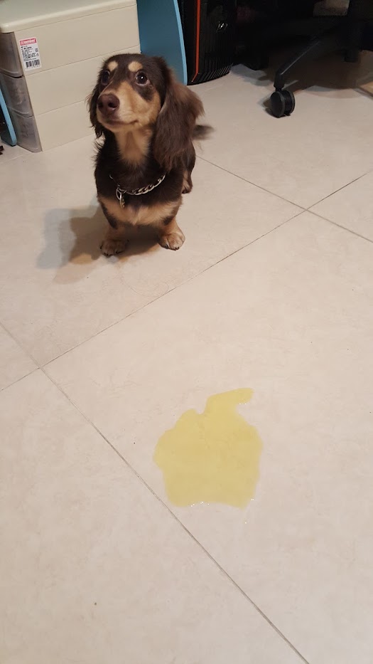 每天晚上到了特定時段,巧克力就會突然切換成「暴衝模式」,在房間裡瘋狂折返跑,攔都攔不住,彷彿非得要把整天剩餘的電力耗盡才甘心。若是獨留他在家,他也會鬧脾氣,在床上亂尿尿,或是把視線所及的東西全咬過一遍,抓門板、咬家具,戰績輝煌。
