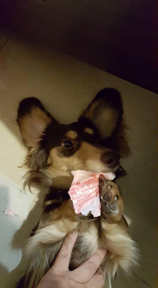 那時我們一回到家打開門,迎接我們的往往是各種「驚嚇」。雖然當下總會忍不住崩潰大喊:「巧克力~你在幹嘛啦!!」💢但看著他事後心虛地躲進狗屋,再用那雙無辜的大眼睛向我們求饒,誰又能真的生氣呢?肯定沒多久就融化在他的眼神裡,選擇原諒了。